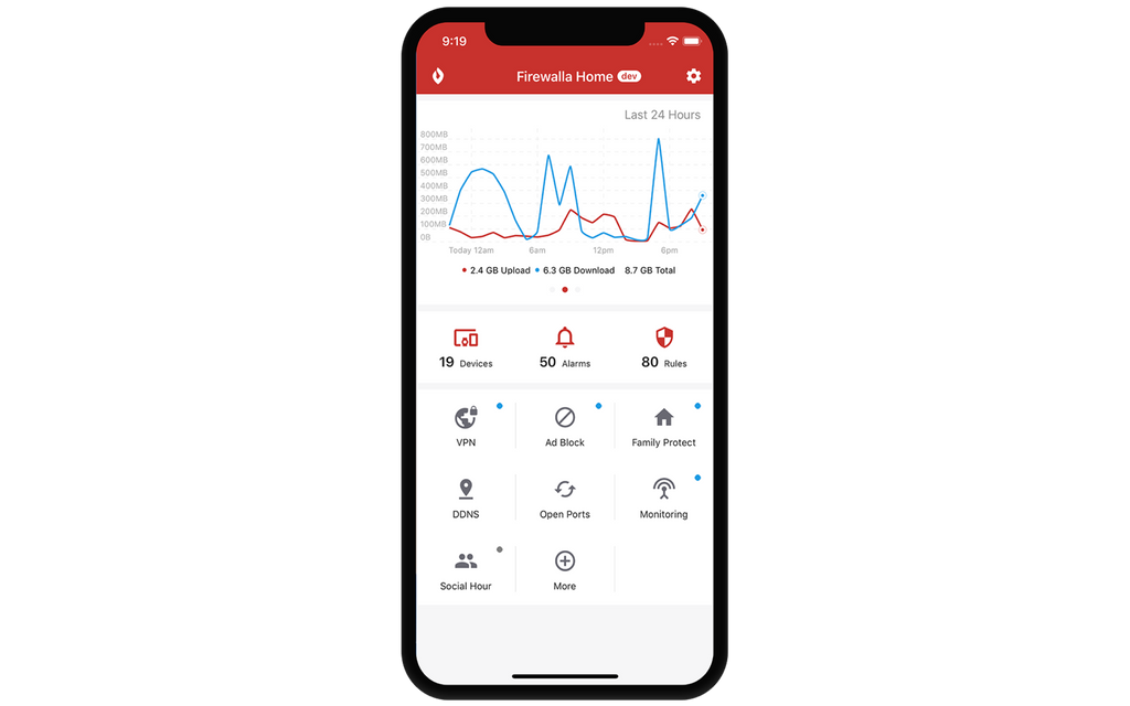 Plug the red Firewalla box into your router, launch our mobile app, and you’re ready to go. With just one Firewalla you’ll protect every connected device in your home. Our all-in-one VPN server and ad blocker protects your privacy and offers tools for managing internet usage for everyone in the house, including your kids.